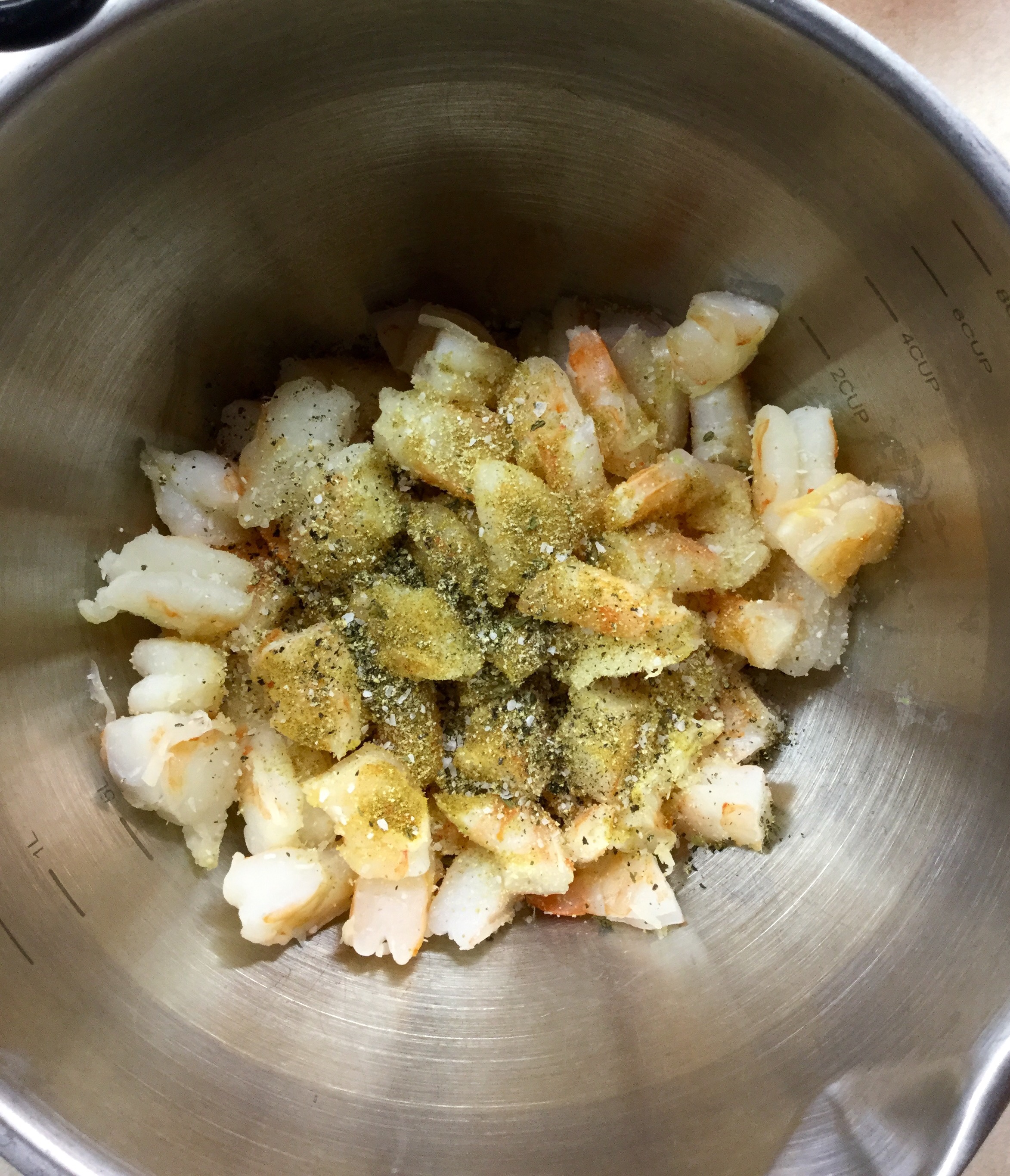 - 3/4 lb shrimp, peeled, deveined, and cooked, diced large